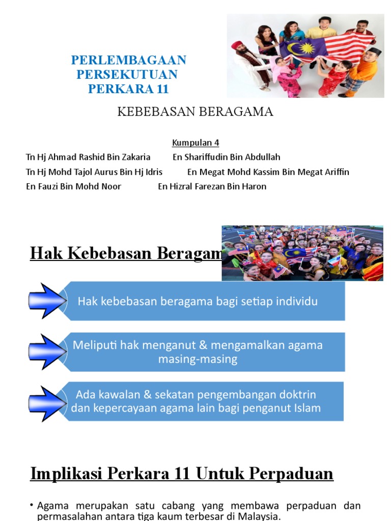 Hal kebebasan beragama ini diperuntukkan dalam Perkara 11 Perlembagaan Persekutuan. Kebebasan agama diabadikan dalam Perlembagaan Malaysia. Dapatkan berita terkini mengenai perkara-11-perlembagaan-persekutuan dari Astro Awani Penganut Kristian boleh guna kalimah Allah Mahkamah Tinggi di sini hari ini.